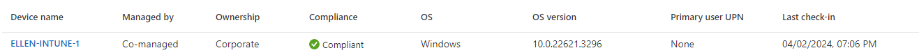 A visual showing what the screen would look like when verifying Intune enrollment.