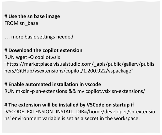 CDEs provide pre-configured, standardized environments that can be deployed instantly across the entire development team using a container definition such as the one in the figure below. This approach ensures that all developers are working in identical environments, each configured to enforce access to compliant AI modules. In addition, such infrastructure allows organizations to pre-configure access to multiple AI modules in order to implement a resilient service.