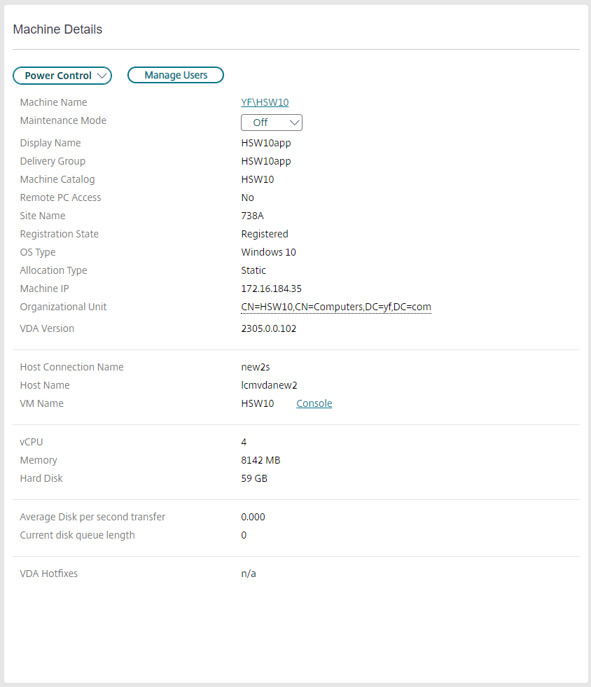 In the user details page, administrators can access machine-specific information related to user sessions. This includes the computer name, display name, delivery group, computer directory, remote PC access, site name, and Windows connection location. By understanding the physical configuration, managers can identify system issues and make corrective decisions accordingly.